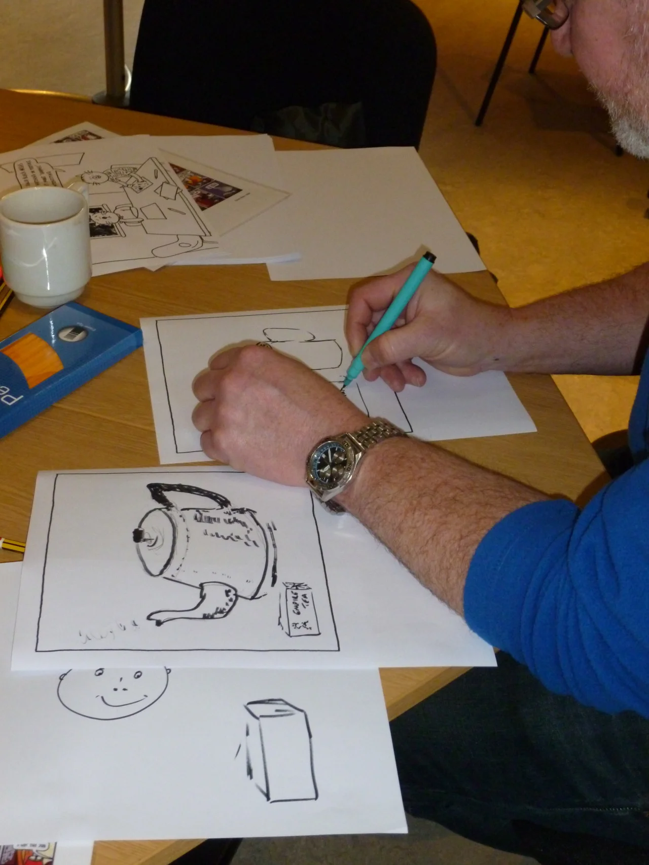 Here are some photos from the comics Ghost Labs. Jim asked participants to choose an object that appealed to them and use it to create a 3-panel comic strip exploring the past and/or the future life of their chosen object.